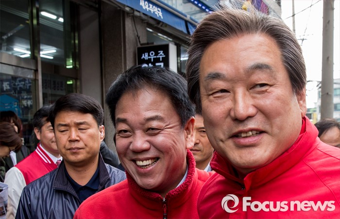 (수원=포커스뉴스) 4.13 총선을 하루 앞둔 12일 오전 경기 수원 정자시장에서 박종희 새누리당 수원시갑 후보 지원유세에 나선 김무성 대표가 박 후보와 함께 유세자량으로 향하고 있다.