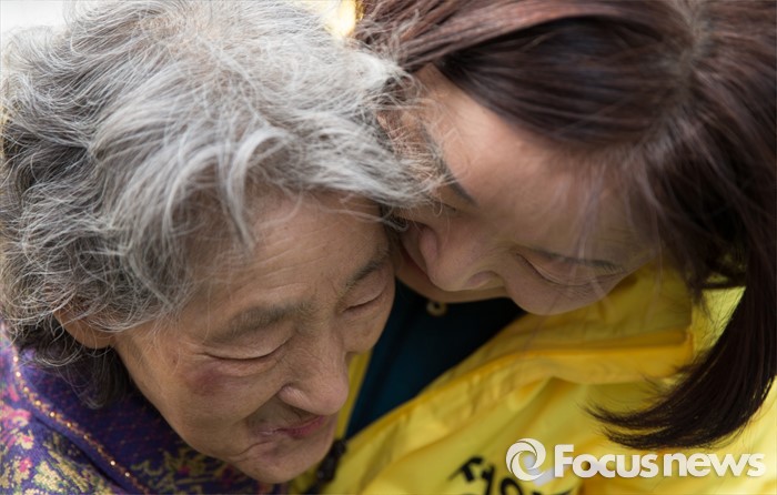 (고양=포커스뉴스) 제20대 국회의원 선거를 하루 앞둔 12일 오후 심상정 정의당 고양갑 후보가 경기 고양시 롯데마트 화정점 앞에서 지지자와 포옹하고 있다.