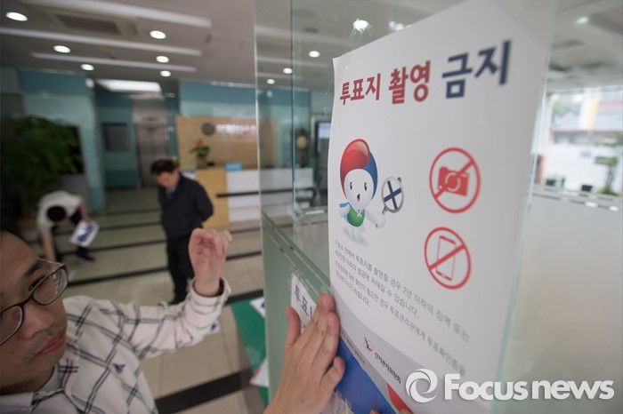 | △ 기표소 설치하는 사무원들 |