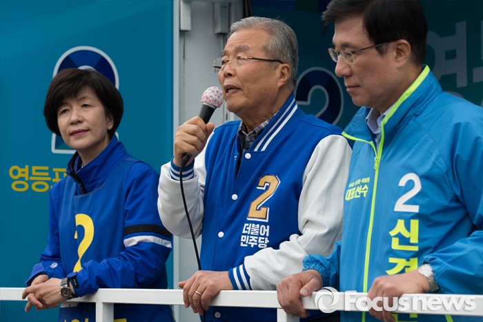 김 대표는 이날 오후 영등포 사러가 시장 사거리에서 김영주(영등포갑)·신경민(영등포을) 후보와 합동유세를 벌이며 "이번 총선을 앞두고 갑작스럽게 정당들이 많이 태어났다. 어떤 사람은 3당론을 주장하고 있다"며 이같이 말했다.
