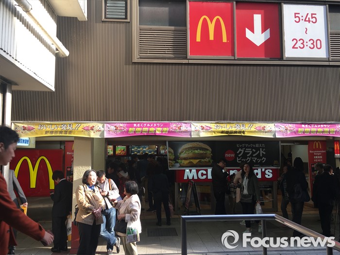 (서울=포커스뉴스) 일본 맥도날드가 광고에서 한국식 인사법을 선보여 논란이 되고 있으며 일본 국내에서는 불매운동 움직임까지 일어나고 있다. 사진은 12일 오후 일본 혼슈 오사카 우메다에 있는 맥도날드의 모습. <사진제공=독자>