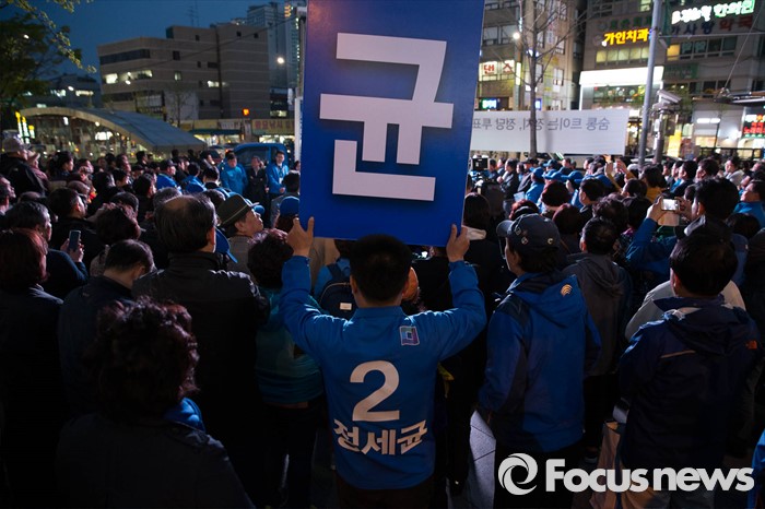 (서울=포커스뉴스) 20대 총선을 하루 앞둔 12일 오후 서울 종로구의 한 아파트 일대에서 정세균 더불어민주당 종로구 후보가 막바지 선거유세를 하고 있다.