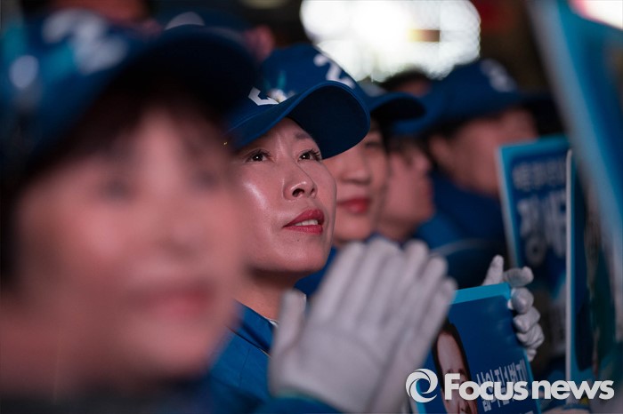(서울=포커스뉴스) 20대 총선을 하루 앞둔 12일 오후 서울 종로구의 한 아파트 일대에서 유권자들이 정세균 더불어민주당 종로구 후보가 막바지 선거유세를 지켜보고 있다.