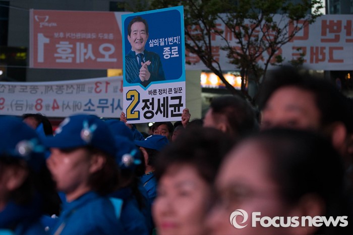 | △ 정세균 후보 유세 지켜보는 유권자들 |