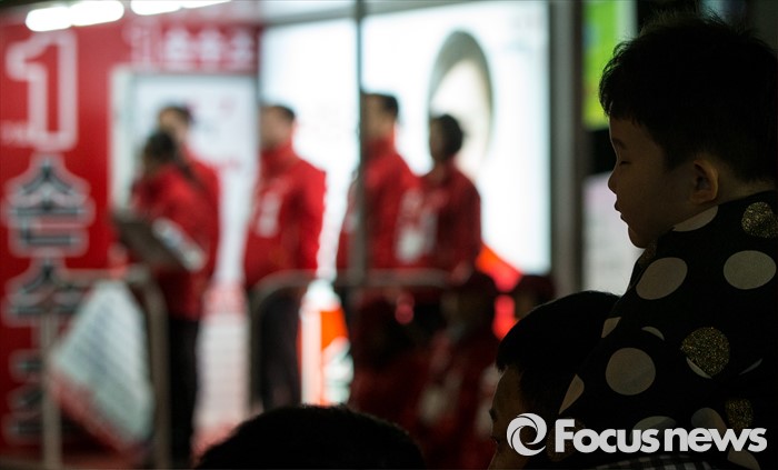 (부산=포커스뉴스) 4.13총선 선거운동 마지막날인 12일 오후 부산 사상구 엄궁초등학교 인근에서 한 어린이가 손수조 새누리당 부산 사상구 후보의 연설을 듣고 있다.