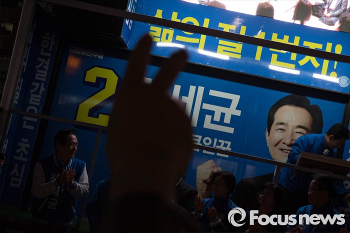 (서울=포커스뉴스) 20대 총선을 하루 앞둔 12일 오후 서울 종로구의 한 아파트 일대에서 정세균 더불어민주당 종로구 후보가 막바지 선거유세를 하고 있다.