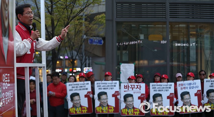 (서울=포커스뉴스) 4.13총선을 하루 앞둔 12일 오후 서울 영등포구 당산역 인근에서 박선규 새누리당 영등포갑 후보 선거유세를 하고 있다.