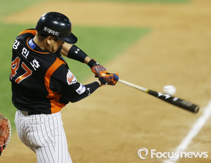 (서울=포커스뉴스) 12일 서울 잠실구장에서 열린 2016 프로야구 롯데-LG 경기 4회초 롯데 강민호가 타격하고 있다.