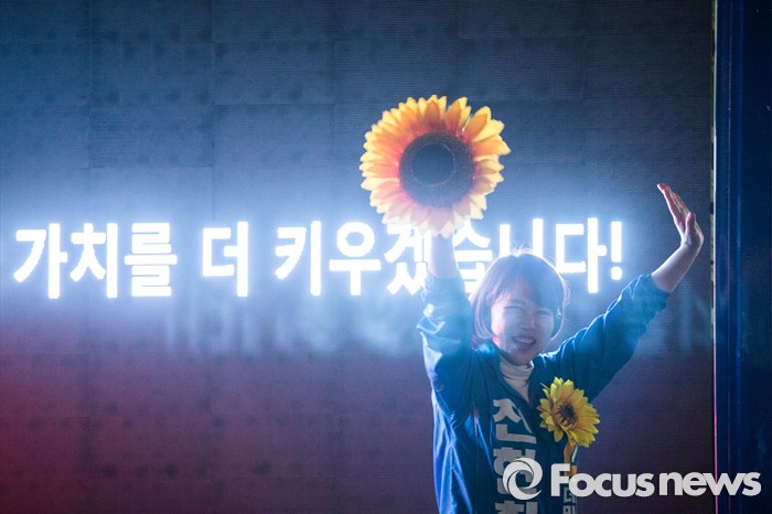 (서울=포커스뉴스) 공식 선거운동이 끝나는 12일 오후 서울 강남구 수서역 앞에서 전현희 더불어민주당 후보가 퇴근길 시민들을 향해 유세를 하고 있다.