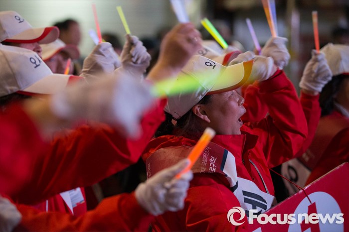 (서울=포커스뉴스) 20대 총선을 하루 앞둔 12일 오후 서울 종로구 경복궁역 일대에서 오세훈 새누리당 종로구 후보측이 막바지 선거유세를 하고 있다.