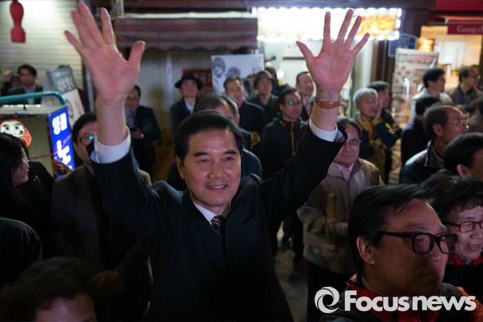 (서울=포커스뉴스) 20대 총선을 하루 앞둔 12일 오후 서울 종로구 경복궁역 일대에서 유권자들이 오세훈 새누리당 종로구 후보측의 선거유세를 지켜보고 있다.
