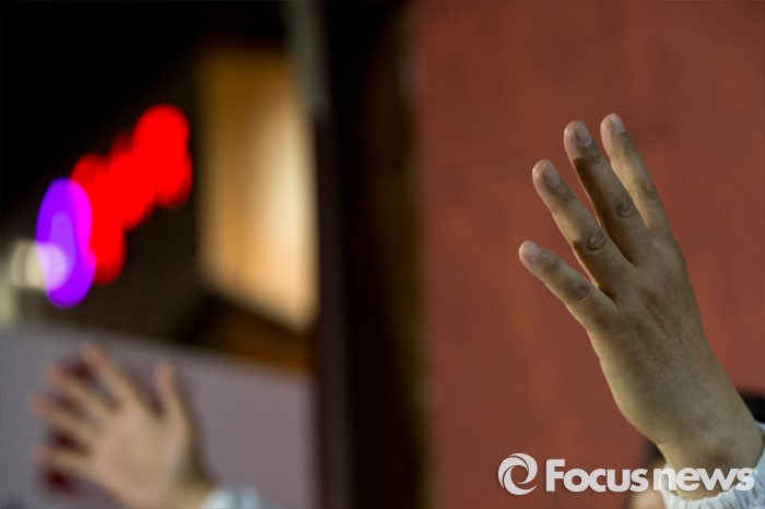 (대구=포커스뉴스) 류성걸 무소속 대구 동구갑 후보가 12일 오후 대구광역시 동구 평화시장 닭똥집골목에서 마무리 합동유세를하며 지지자들에게 감사 인사를 전하고 있다.