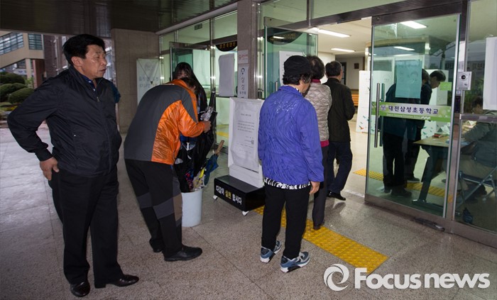 (대전=포커스뉴스) 제20대 국회의원 선거가 시작된 13일 오전 대전 동구 삼성동 제1투표소에서 유권자들이 투표를 하기 위해 기다리고 있다.