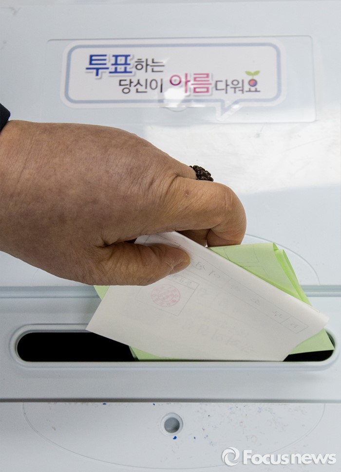 (부산=포커스뉴스) 제20대 국회의원선거일인 13일 오전 부산 영도구 동삼1동 제6투표소에서 유권자들이 투표하고 있다.