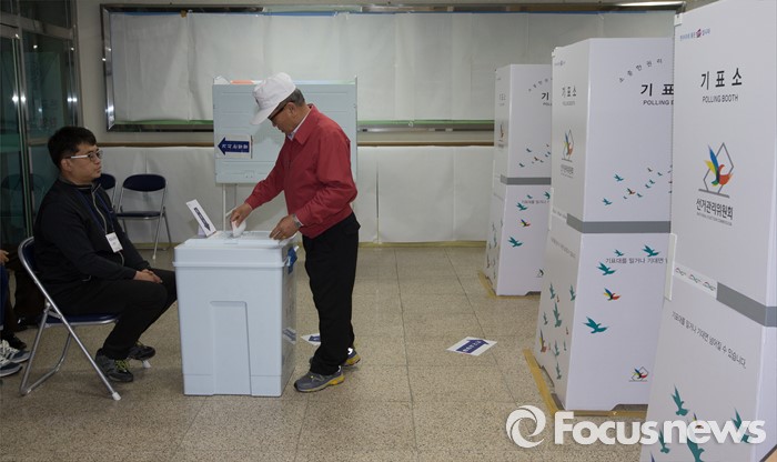 (대전=포커스뉴스) 제20대 국회의원 선거가 시작된 13일 오전 대전 동구 삼성동 제1투표소에서 유권자들이 투표를 하고 있다.