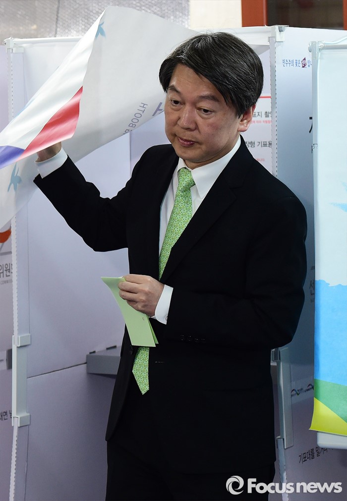 (서울=포커스뉴스) 안철수 국민의당 상임공동대표가 제20대 국회의원선거날인 13일 서울 노원구 상계1동 제7투표소에서 투표를 하고 있다.