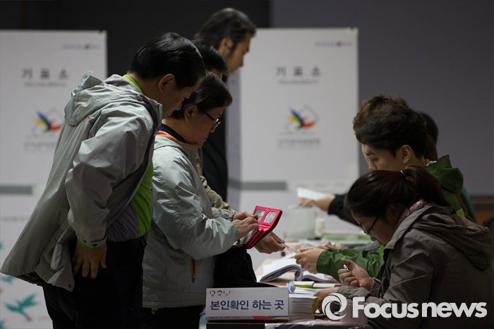(서울=포커스뉴스) 제20대 국회의원선거일인 13일 오전 서울 성북구의 한 투표소에서 유권자들이 투표를 하고 있다.