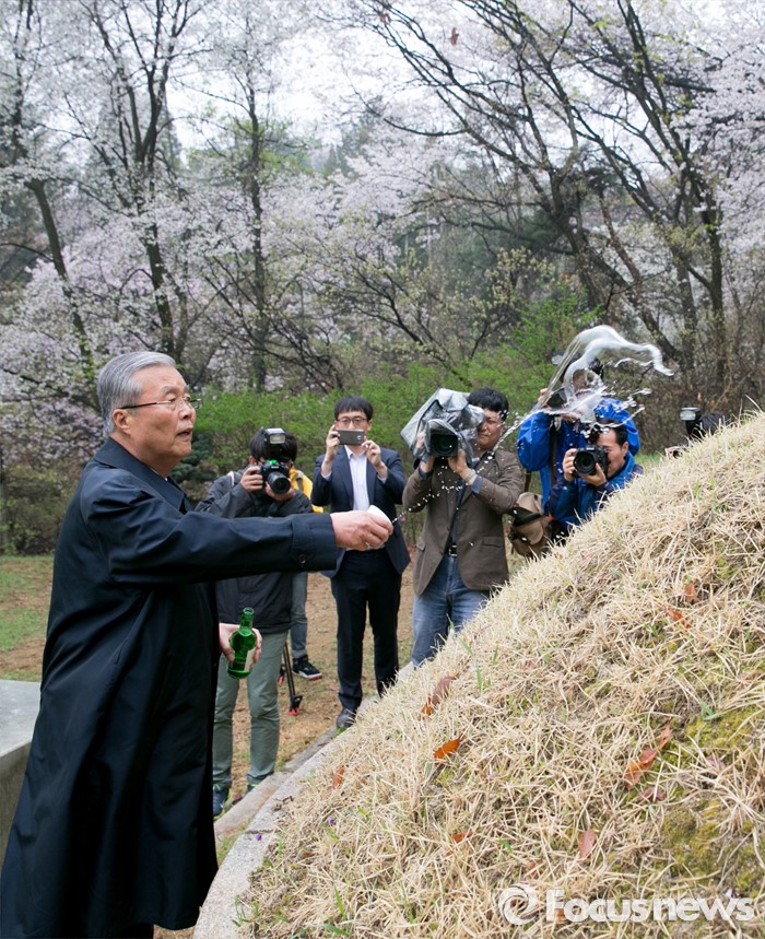 (서울=포커스뉴스) 20대 총선 투표일인 13일 오전 김종인 더불어민주당 비대위 대표 겸 선대위원장이 서울 강북구 수유동에 위치한 자신의 조부인 가인 김병로 선생 묘소를 찾아 성묘를 하고 있다.