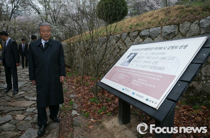 (서울=포커스뉴스) 20대 총선 투표일인 13일 오전 김종인 더불어민주당 비대위 대표 겸 선대위원장이 서울 강북구 수유동에 위치한 자신의 조부인 가인 김병로 선생 묘소를 찾아 성묘를 마친 뒤 이동하고 있다.