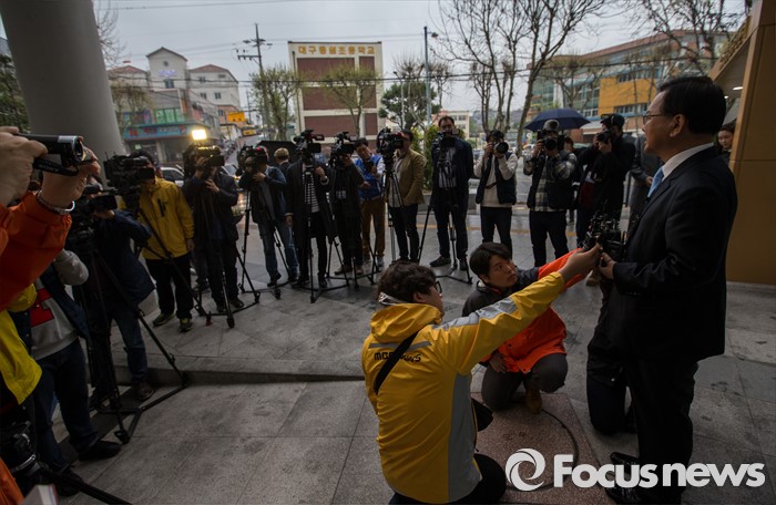 (대구=포커스뉴스) 제20대 국회의원선거날인 13일 오전 대구 수성구 만촌주민센터에 마련된 투표소에서 김부겸 더불어민주당 대구 수성갑 후보가 투표를 마친 뒤 취재진과 인터뷰 하고 있다.