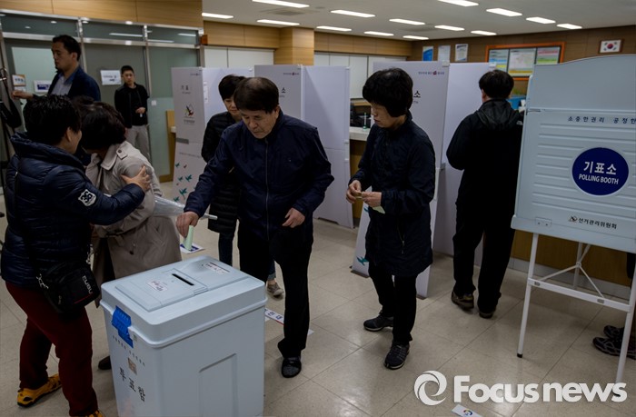 (대구=포커스뉴스) 제20대 국회의원선거날인 13일 오전 대구 수성구 만촌주민센터에 마련된 투표소에서 유권자들이 투표를 하고 있다.