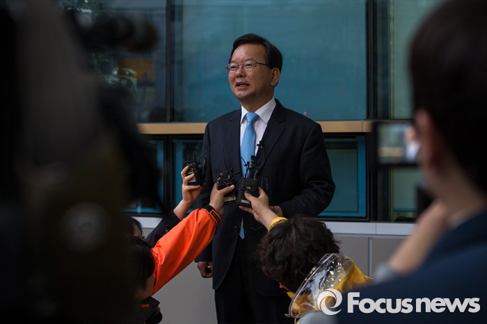 (대구=포커스뉴스) 제20대 국회의원선거날인 13일 오전 대구 수성구 만촌주민센터에 마련된 투표소에서 김부겸 더불어민주당 대구 수성갑 후보가 투표를 마친 뒤 취재진과 인터뷰 하고 있다.