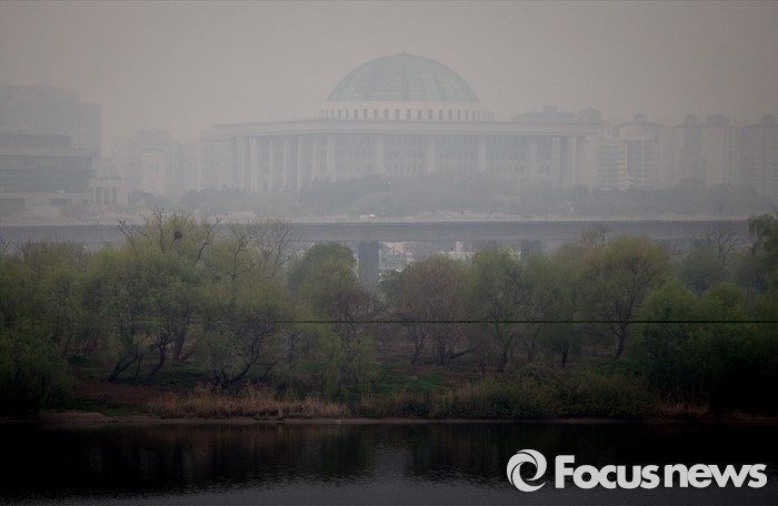 (서울=포커스뉴스) 제 20대 국회의원 선거 투표가 시작 된 13일 오전 서울 마포구 서강대교 북단에서 안개에 둘러싸인 국회가 보이고 있다.