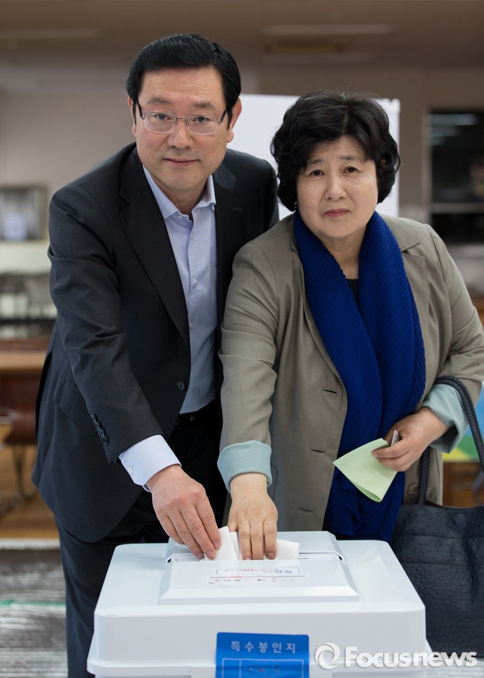 | △ 투표하는 이용섭 후보와 부인 신영옥씨 |