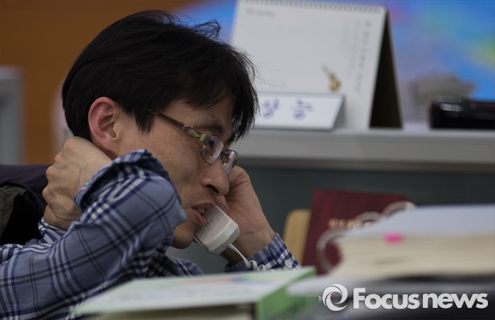 (서울=포커스뉴스) 제20대 국회의원선거일인 13일 오후 경기도 과천 중앙선거관리위원회에 마련된 선거상황실에서 한 직원이 분주히 업무를 보고 있다.