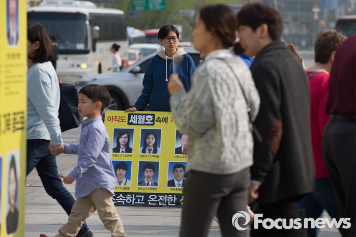 광화문 세월호 농성장에서 피켓팅하는 시민