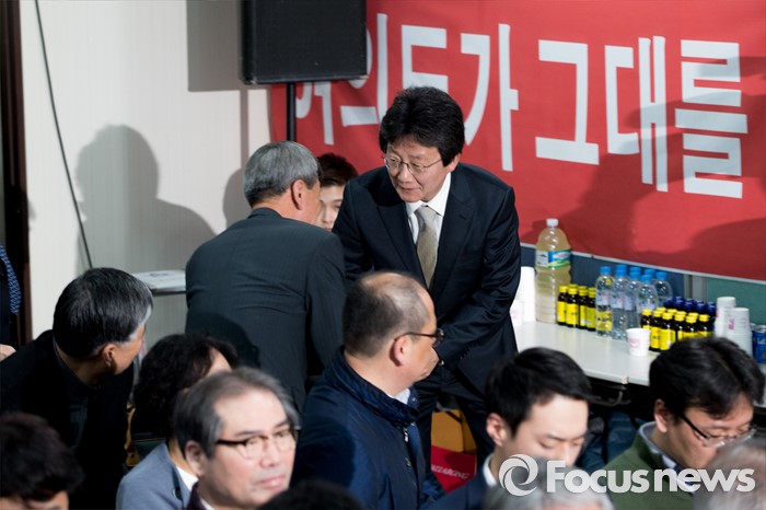 (대구=포커스뉴스) 제20대 국회의원선거 출구조사를 통해 유승민 무소속 대구 동구을 후보가 당선이 예측된 13일 오후 대구 동구 유 후보 선거사무소에서 유승민 후보가 지지자들의 축하를 받고 있다.