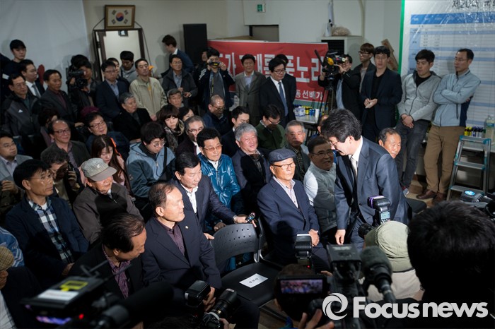 (대구=포커스뉴스) 제20대 국회의원선거 출구조사를 통해 유승민 무소속 대구 동구을 후보가 당선이 예측된 13일 오후 대구 동구 유 후보 선거사무소에서 유승민 후보가 선거상황실로 들어서고 있다.