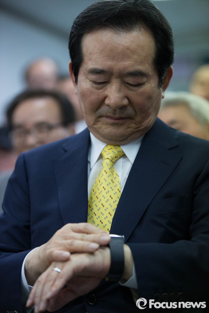 | △ 시각 확인하는 정세균 후보 |