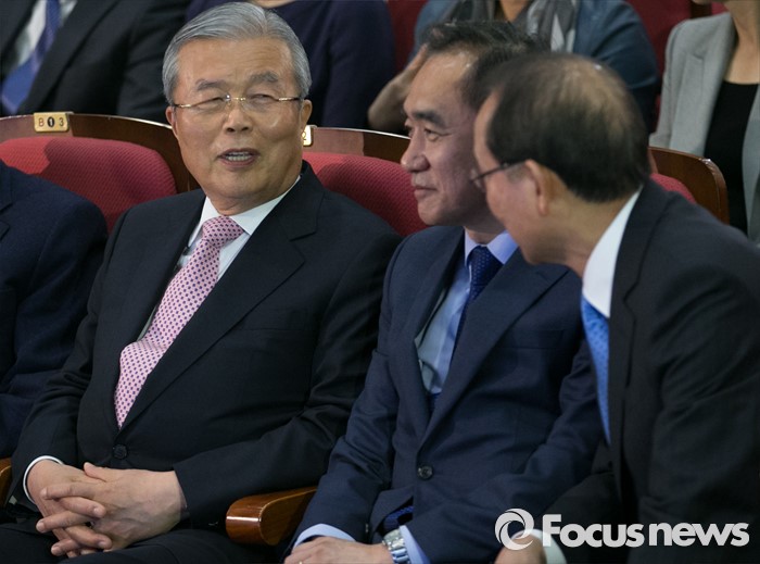 (서울=포커스뉴스) 20대 총선 투표일인 13일 오후 서울 여의도 국회 의원회관 대회의실에 마련된 더불어민주당 개표상황실에서 김종인(왼쪽부터) 비대위 대표 겸 선대위원장, 정장선 총선기획단장, 최운열 국민경제상황실장이 대화하고 있다.