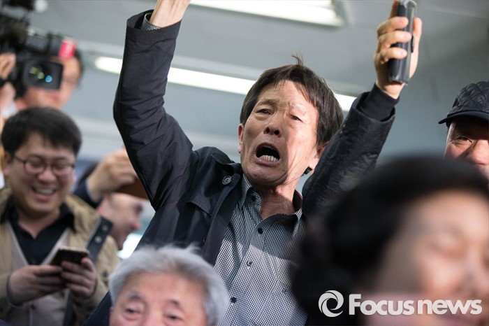(서울=포커스뉴스) 제20대 국회의원선거일인 13일 오후 서울 종로구 정세균 더불어민주당 종로구 후보의 사무실에서 지지자들이 개표방송을 보고 환호하고 있다.