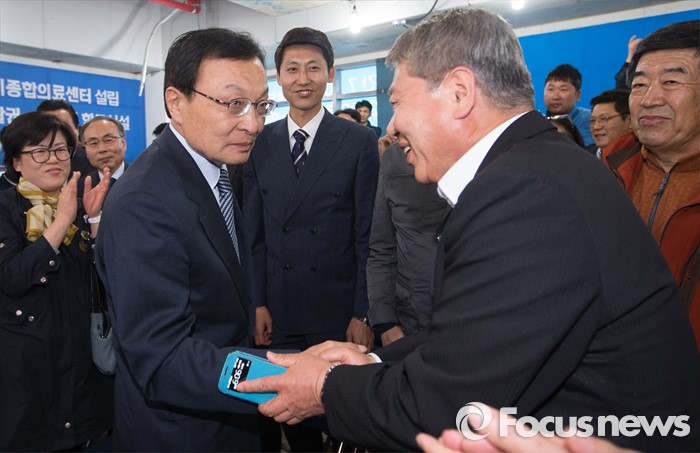 (세종=포커스뉴스) 제20대 국회의원선거가 마감된 가운데 이해찬 무소속 후보가 13일 오후 세종시 도담동 선거사무소에서 방송3사 출구조사 결과 앞서는 것으로 나타나자 지지자들과 함께 환호하고 있다.
