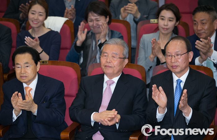 (서울=포커스뉴스) 20대 총선 투표일인 13일 오후 서울 여의도 국회 의원회관 대회의실에 마련된 더불어민주당 개표상황실에서 김종인(가운데) 비대위 대표 겸 선대위원장, 송현섭(왼쪽) 부위원장, 최운열 국민경제상황실장이 출구조사 및 개표방송을 시청하며 박수치고 있다.