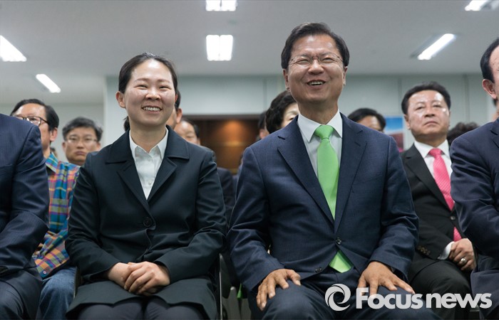 (광주=포커스뉴스) 제20대 국회의원 선거일인 13일 오후 광주 서구 국민의당 광주광역시당에서 천정배(오른쪽) 국민의당 공동대표와 권은희 국민의당 광산구을 후보가 출구조사 결과를 보고 있다.