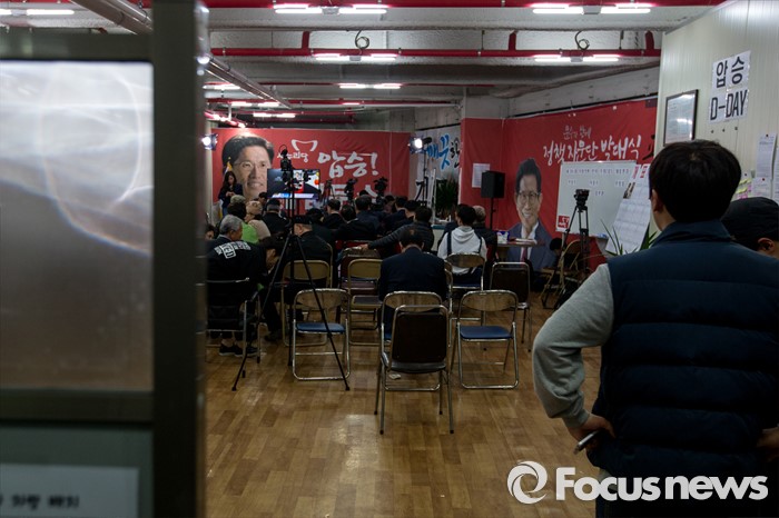 (대구=포커스뉴스) 제20대 국회의원선거 출구조사 결과 대구 수성갑 새누리당 김문수 후보가 38퍼센트에 그치며 당선이 불투명한 13일 오후 대구 수성구 김 후보 선거사무소에 지지자들이 개표방송을 보고 있다.
