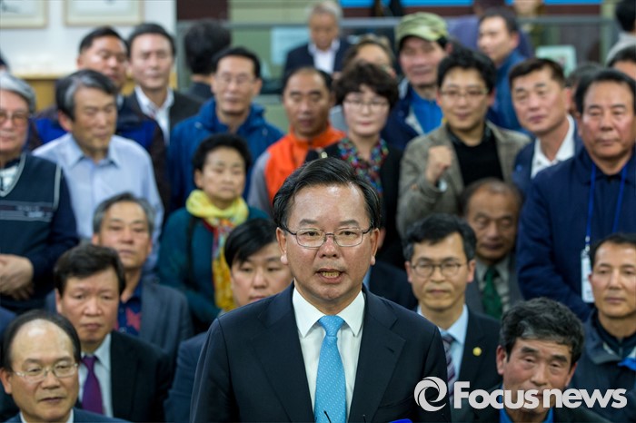 (대구=포커스뉴스) 제20대 국회의원선거 출구조사를 통해 김부겸 더불어민주당 대구 수성갑 후보가 김문수 새누리당 대구 수성갑 후보를 제치고 당선이 예측된 13일 오후 대구 수성구 김 후보 선거사무소에서 김부겸 후보가 취재진과 인터뷰 하고 있다.