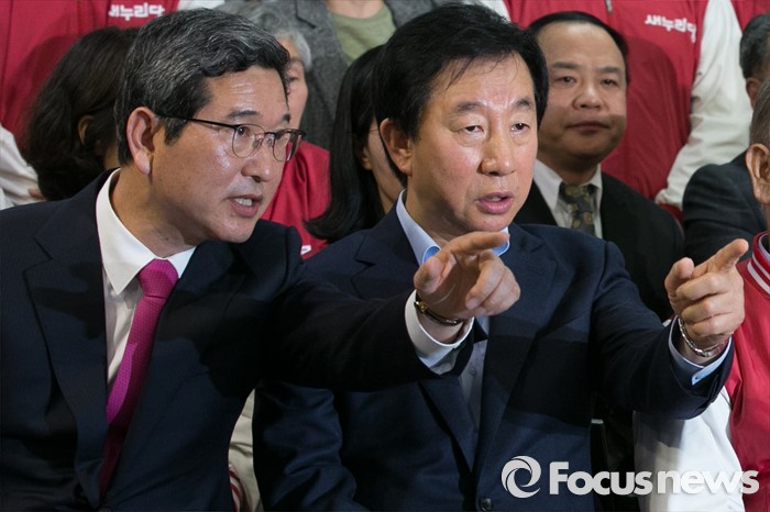 (서울=포커스뉴스) 제20대 국회의원 선거날인 13일 오후 서울 여의도 새누리당사에서 김성태(오른쪽) 의원과 김학용(왼쪽) 의원이 방송 3사의 출구조사를 시청하며 대화하고 있다.