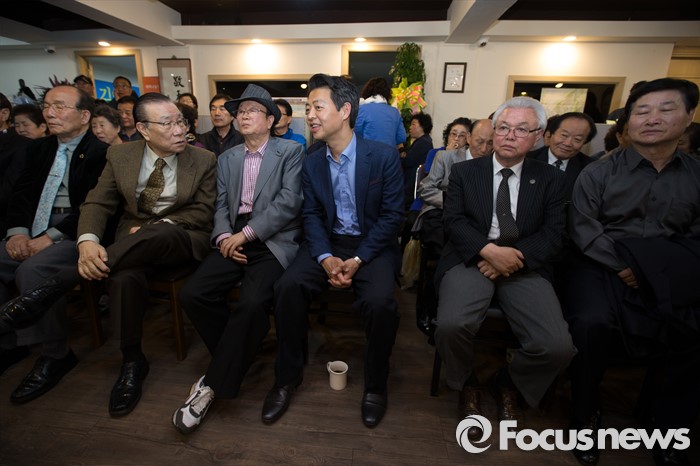 (서울=포커스뉴스) 13일 오후 서울 서대문구 김영호 더불어민주당 서대문구을 후보의 사무실에서 김후보가 지지자들과 함께 이야기나누고 있다.