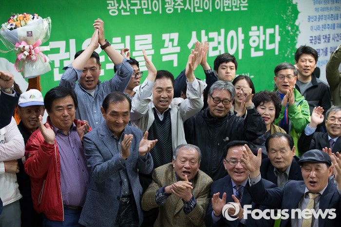 (광주=포커스뉴스) 13일 오후 광주 광산구 수완동 권은희 국민의당 광주 광산구을 후보 선거사무실에서 권 후보의 당선이 유력해지자 지지자들이 환호하고 있다.