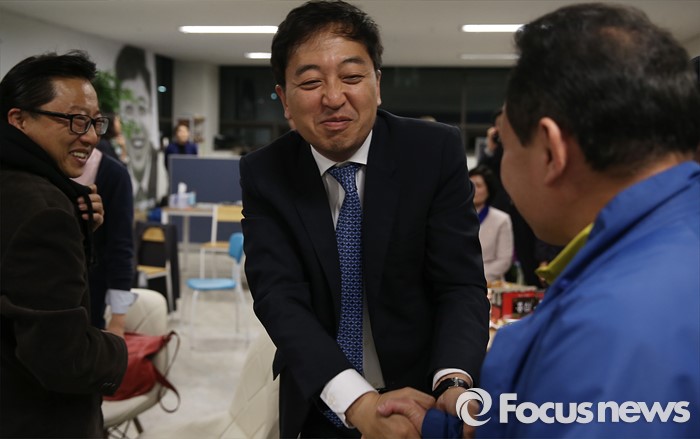 (서울=포커스뉴스) 제20대 국회의원 선거날인 13일 오후 서울 강서구에 위치한 선거사무실에서 금태섭 더불어민주당 강서갑 후보가 지지자들과 인사를 하고 있다.