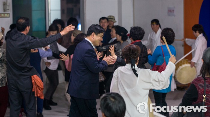 (대구=포커스뉴스) 제20대 국회의원선거 대구 북구을 선거구에서 당선이 확실시 된 무소속 홍의락 후보가 13일 오후 대구 북구 선거사무소에서 지지자들과 함께 기쁰을 만끽 하고 있다.