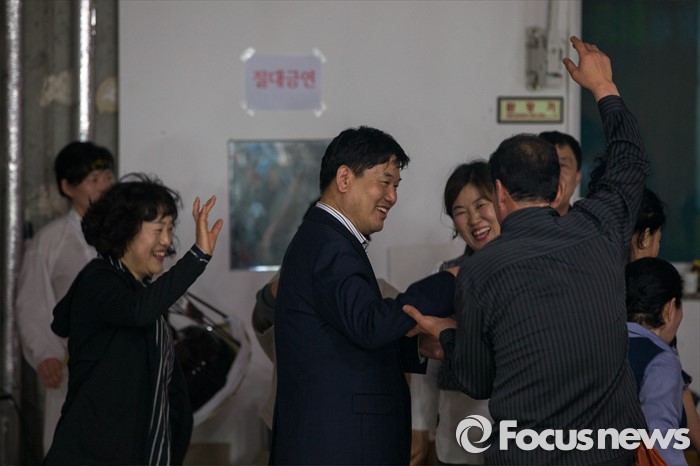 (대구=포커스뉴스) 제20대 국회의원선거 대구 북구을 선거구에서 당선이 확실시 된 무소속 홍의락 후보가 13일 오후 대구 북구 선거사무소에서 지지자들과 함께 기쁰을 만끽 하고 있다.