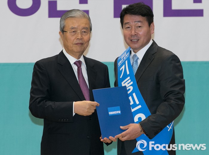 (서울-포커스뉴스) 14일 오전 0시 19분 KBS는 개표율 75.8% 현재 서울 성북을 더불어민주당 기동민 후보가 38.4%를 득표해 당선이 확실하다고 밝혔다.(서울=포커스뉴스) 김종인(왼쪽) 더불어민주당 비대위 대표가 24일 오전 서울 여의도 국회에서 공천장 수여식에 참석해 기동민 서울 성북을 후보에게 공천장을 전달한 뒤 기념촬영을 하고 있다. 2016.03.24 박동욱 기자
