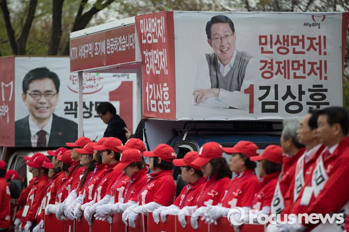 △1968년 대구 출생 △대구 대건고등학교·영남대학교 법학과 졸업·서울대학교 행정대학원 중퇴·미(美) 오리건대 행정대학원 행정학 석사 졸업 △제33회 행정고시·대구시 경제통상국장·제19대 국회의원·새누리당 원내부대표·국회 산업통상자원위원회 위원·정치개혁특별위원회 위원·새누리당 공천제도특별위원회 위원(대구=포커스뉴스) 새누리당 선거운동원들이 6일 오후 대구광역시 달서구 성당동 일대에서 열린 대구지역 후보자 총집결 거리유세에서 선거 유세를 바라보고 있다. 2016.04.06 김흥구 기자