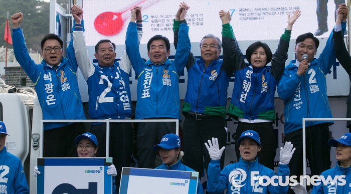 2위는 19대 의원이었던 김용남 후보가 46.1%에 그치면서 고배를 들었다.(수원=포커스뉴스) 4일 오후 경기도 수원 팔달문시장 앞에서 열린 더불어민주당 수원지역 합동유세에 참석한 김종인 비대위 대표 겸 선대위원장과 후보들이 만세를 외치며 지지를 호소했다. 오른쪽 마이크를 든 후보가 김영진 당선인. 2016.04.04 박동욱 기자