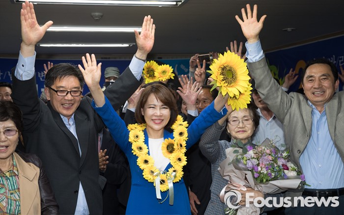 | △ 지지자들과 기뻐하는 전현희 더불어민주당 강남을 후보 |